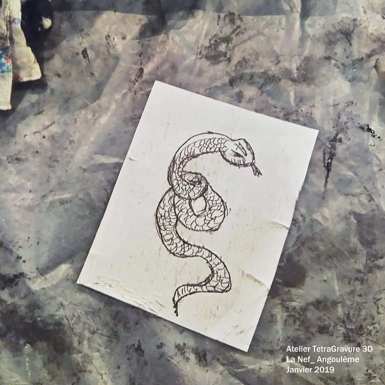 Chaque participant est amené à réaliser une petite gravure et à l’imprimer sur une feuille.
